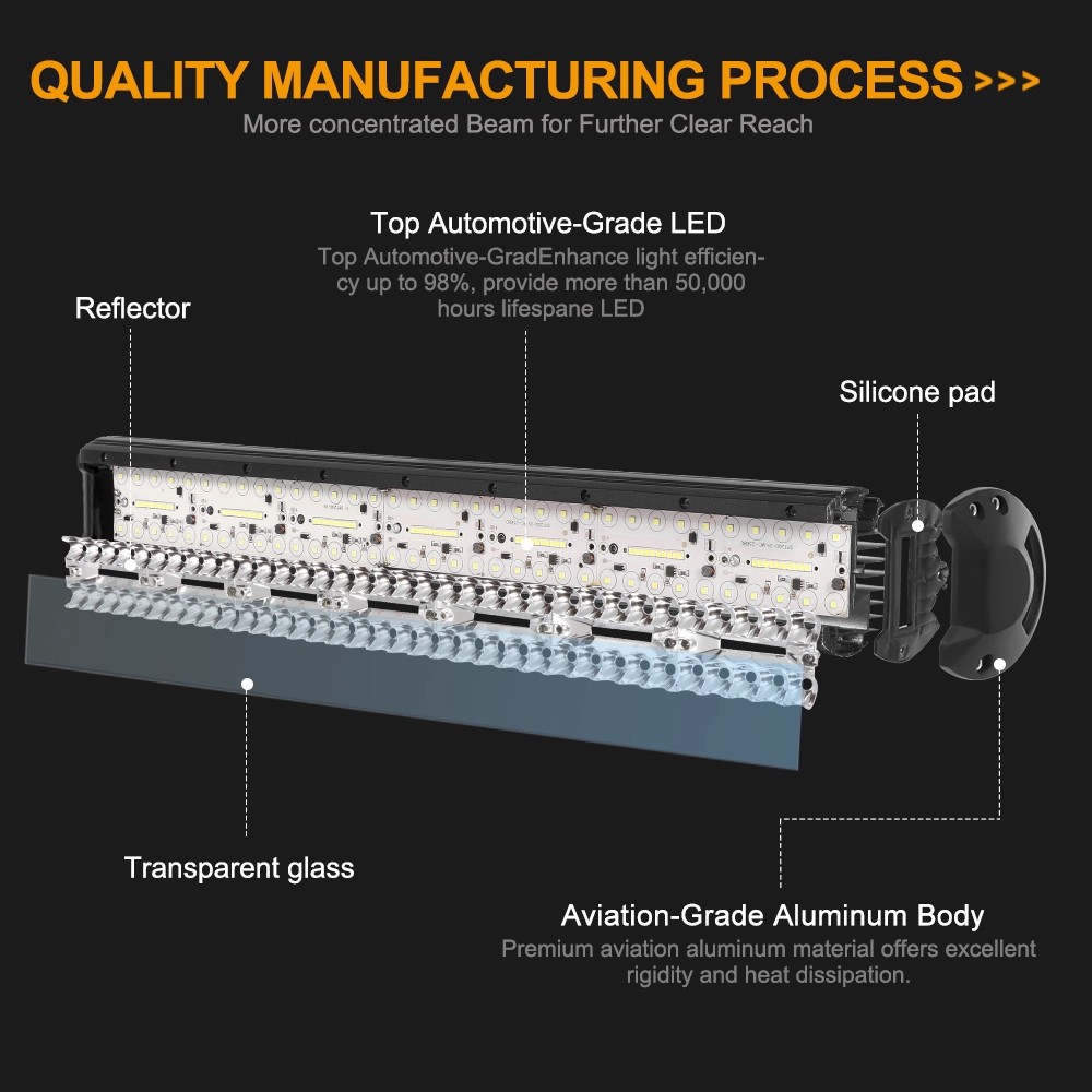 Car LED Work Light 17-inch Roof Long Strip Spotlight Three-row Car Work Light