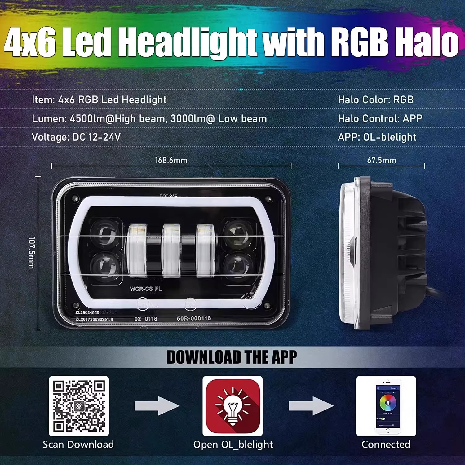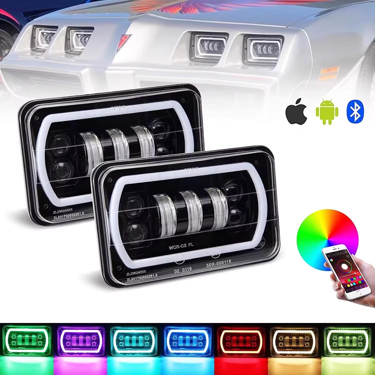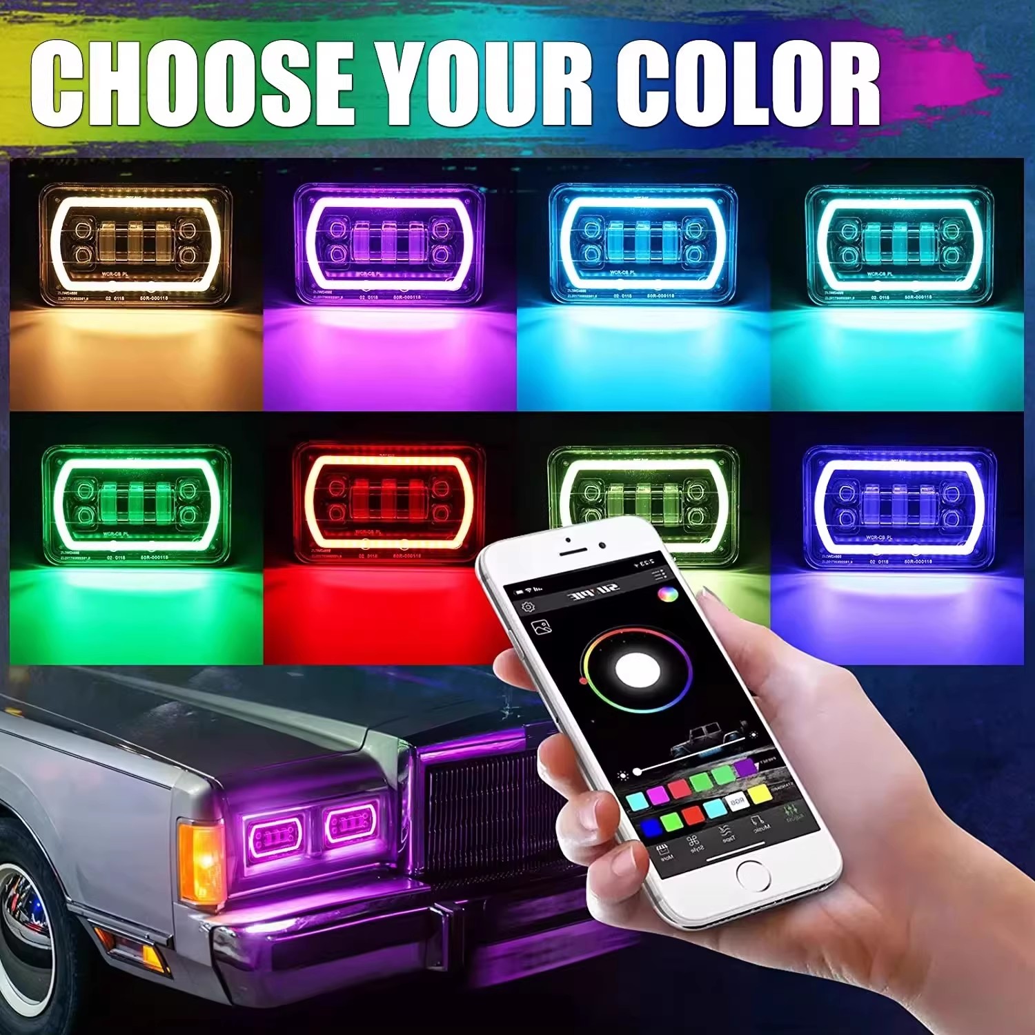 Hot-selling 5-inch square light 4×6 for Jeep Wrangler off-road vehicle modification, work light, 5×6 with RGB halo headlight